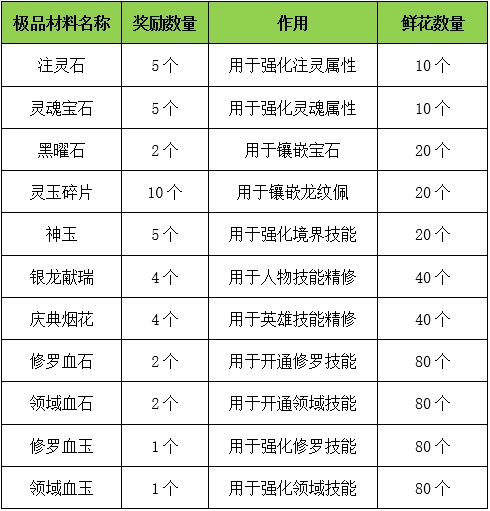 | 参与并获得周日晚上20:00-21:00“名人堂”争霸战胜利行会(包括其联盟行会) |