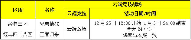 | 5、云端竞技场周五王权和周日名人堂称号争夺活动正常开放。 |